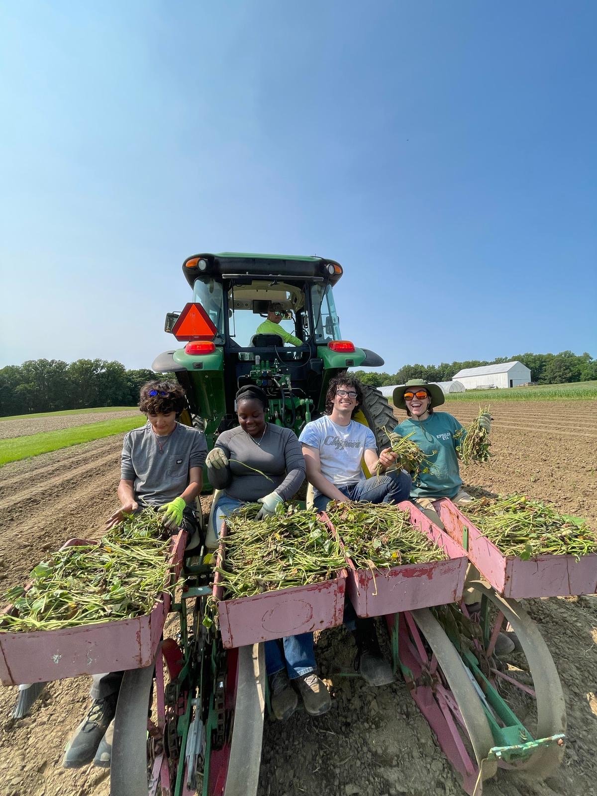 When tasked with mowing, we used wide-area mowers to clear large spaces. Then, we used zero-turn mowers and weed-wackers to cut close to buildings and obstacles. Through teamwork and specialized tasks, we were able to maintain an entire farm in half a workday. To plant a field, we received seeds and spacing instructions from our supervisor. We used a dibbler and transplanted by hand or employed a mechanical transplanter. Most of the weeding on the farm was done through knife weeding or pulling weeds. Some weeding tasks took up to four full days under the sun to completely clear a plot. Harvesting and processing required careful coordination to avoid skipping rows or repeating work. We had strict rules about what was harvested and processed, and decisions often had to be made in a split second.